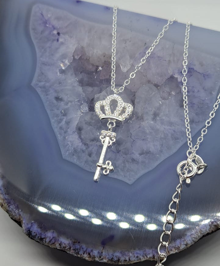 Este colgante de plata en forma de llave con circones brillantes es un encantador amuleto que incluye una cadena para usarlo todos los días. Añade un toque de elegancia y estilo a tu vestuario y mantén su poder que abrirá todos tus caminos. Un regalo perfecto para ti o para alguien especial.