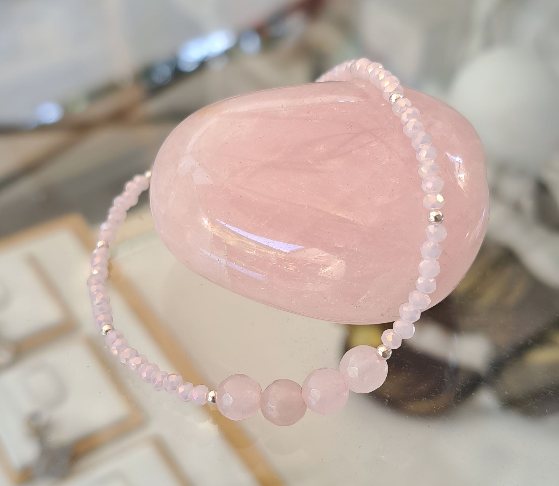 Eleva tu corazón con nuestra pulsera de cuarzo rosado y plata 925. Aumenta la paz interior, mejora la autoestima y promueve el amor incondicional con esta bella pieza hecha a mano. Siente la energía positiva del cuarzo rosado y lleva contigo siempre su poder sanador.