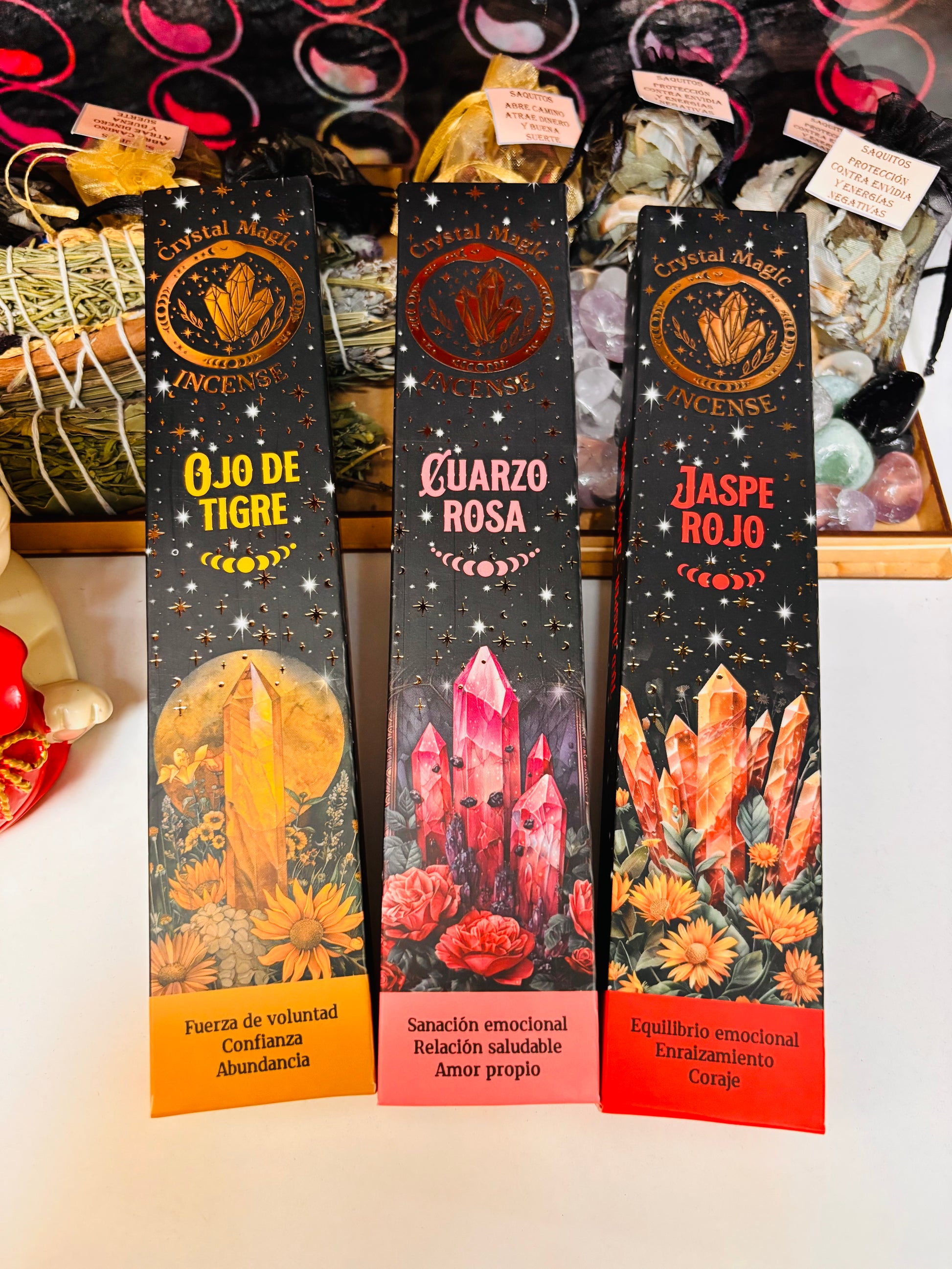 Potencia la energía de tus cuarzos con nuestros inciensos especialmente diseñados para ser utilizados junto a ellos. Nuestros inciensos contienen cuarzos añadidos, lo que los hace perfectos para potenciar y purificar la energía de tus piedras. Mejora tu conexión y experiencia con la energía de los cuarzos con nuestros inciensos.
