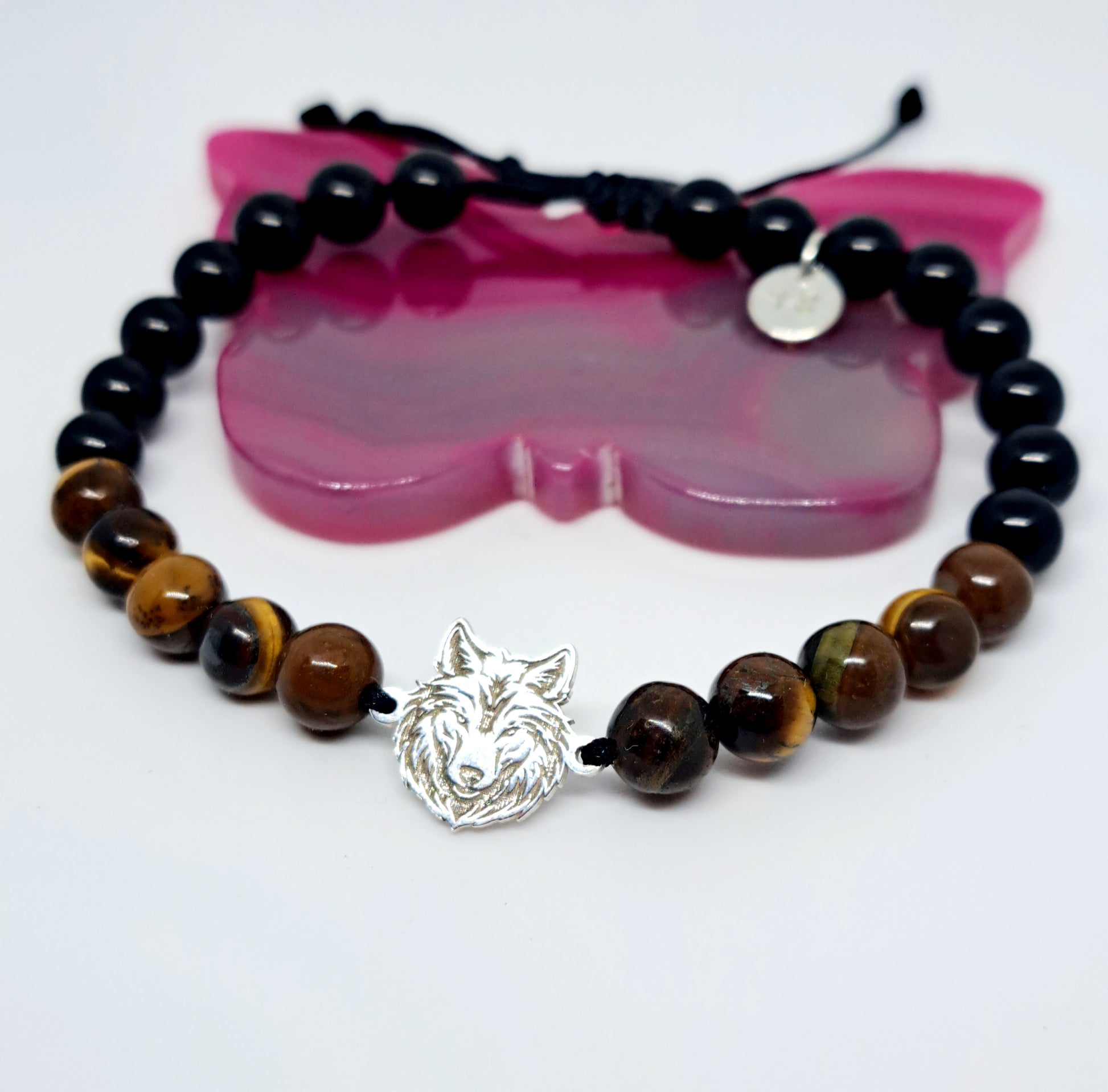 Descubre el poder del Lobo con nuestra pulsera de Cuarzo onix, ojo de tigre y lobo de plata. Protección, fuerza y elegancia en una sola pieza. Aumenta tu confianza y toma el control con este accesorio único. ¡Haz una declaración de estilo y seguridad con El poderoso Lobo!
